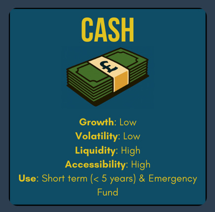 Use: Best for expenses that you need in the next 5 years, or an emergency fund. Cash might look safe on the surface - the number on paper will never drop. But underneath, inflation silently erodes away its value. One wave at a time.