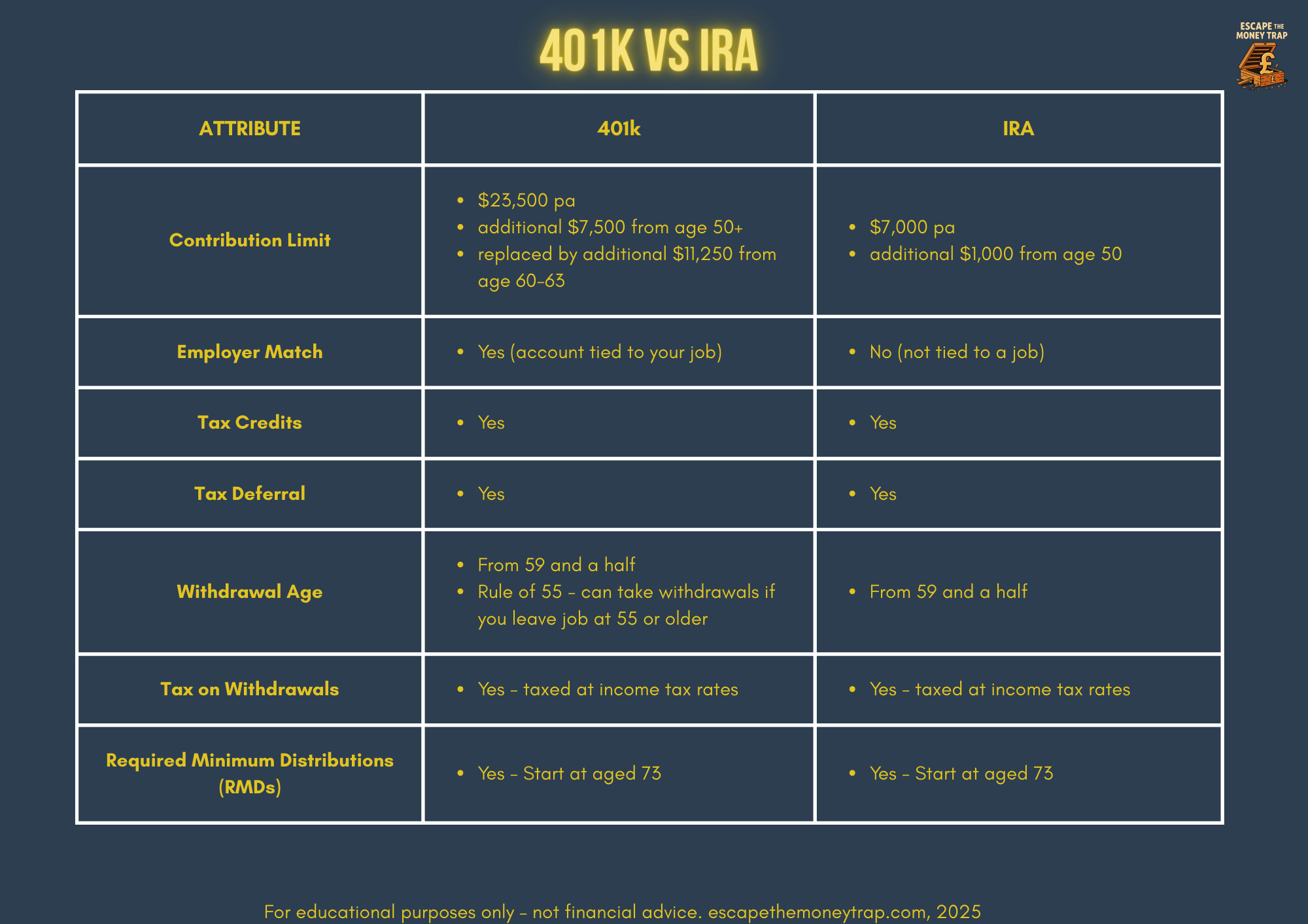 The 401k is a money trap superpower, which helps you escape the traps of inflation, tax and work all in one account.