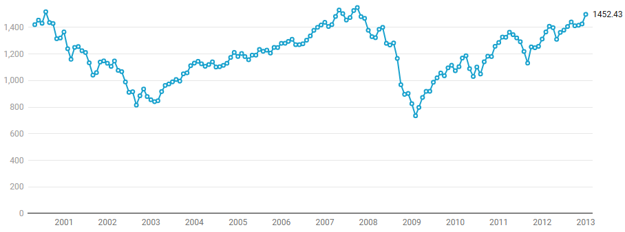 It’s not until January 2013 that the market finally returns to where it was when you first started.