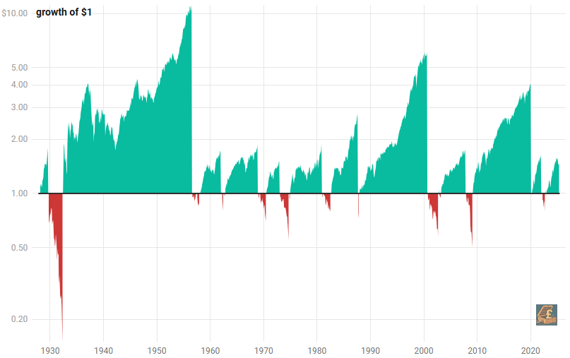 Take a look at this chart of US stock market crashes and recoveries1